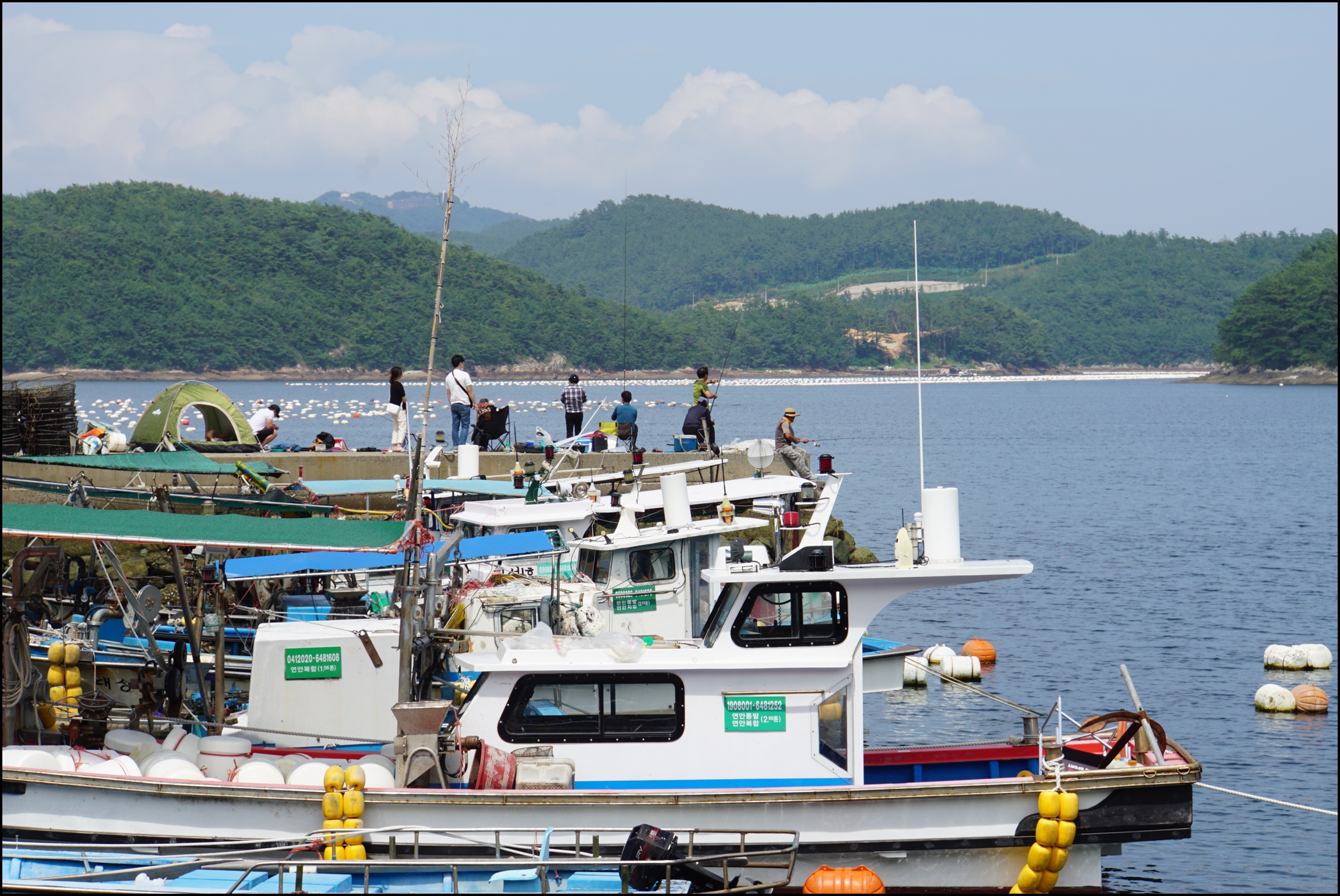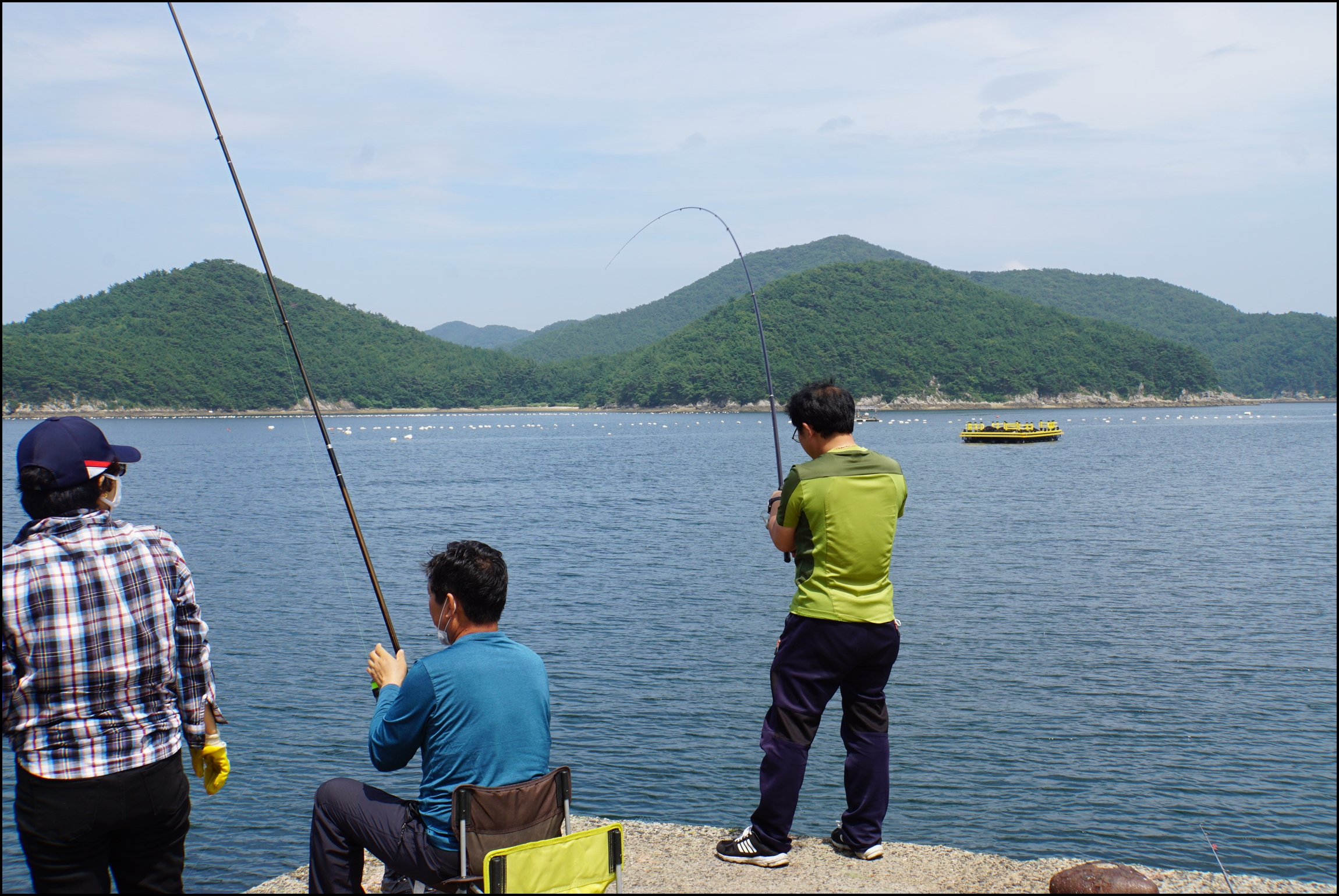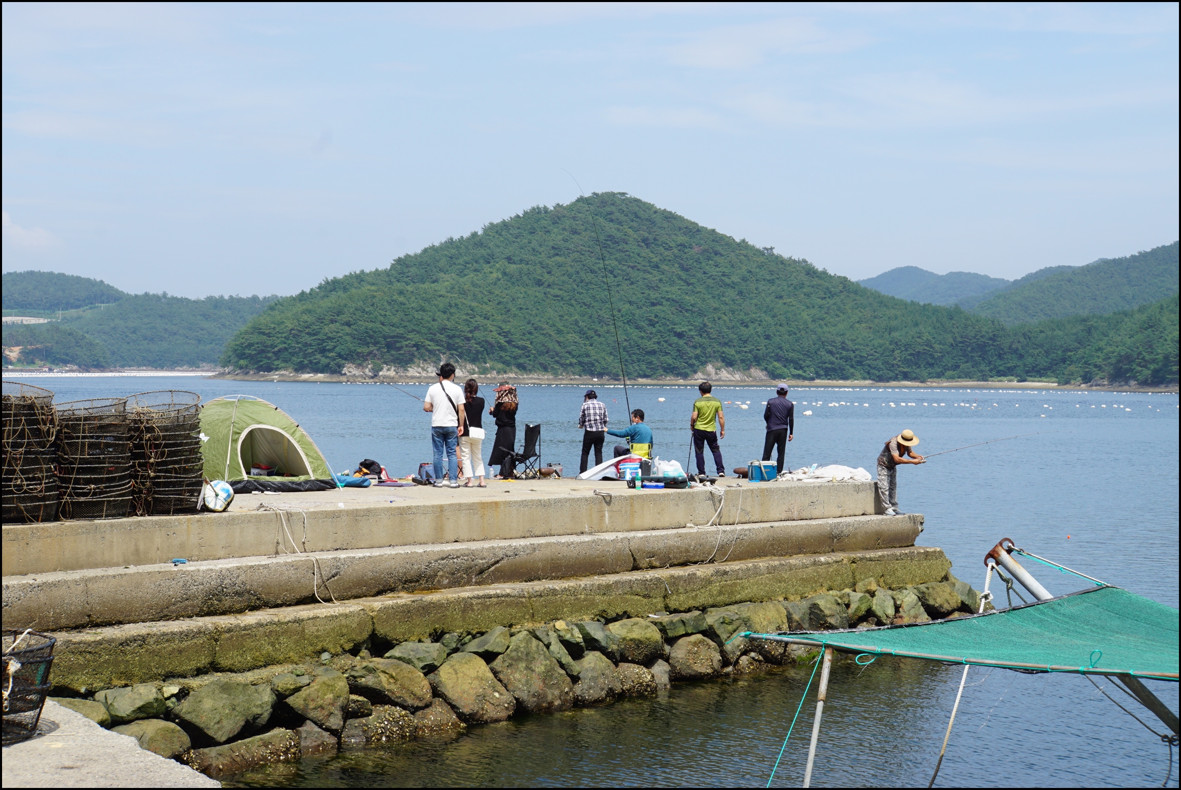 방파제에 낚시를 많이 하시네요.