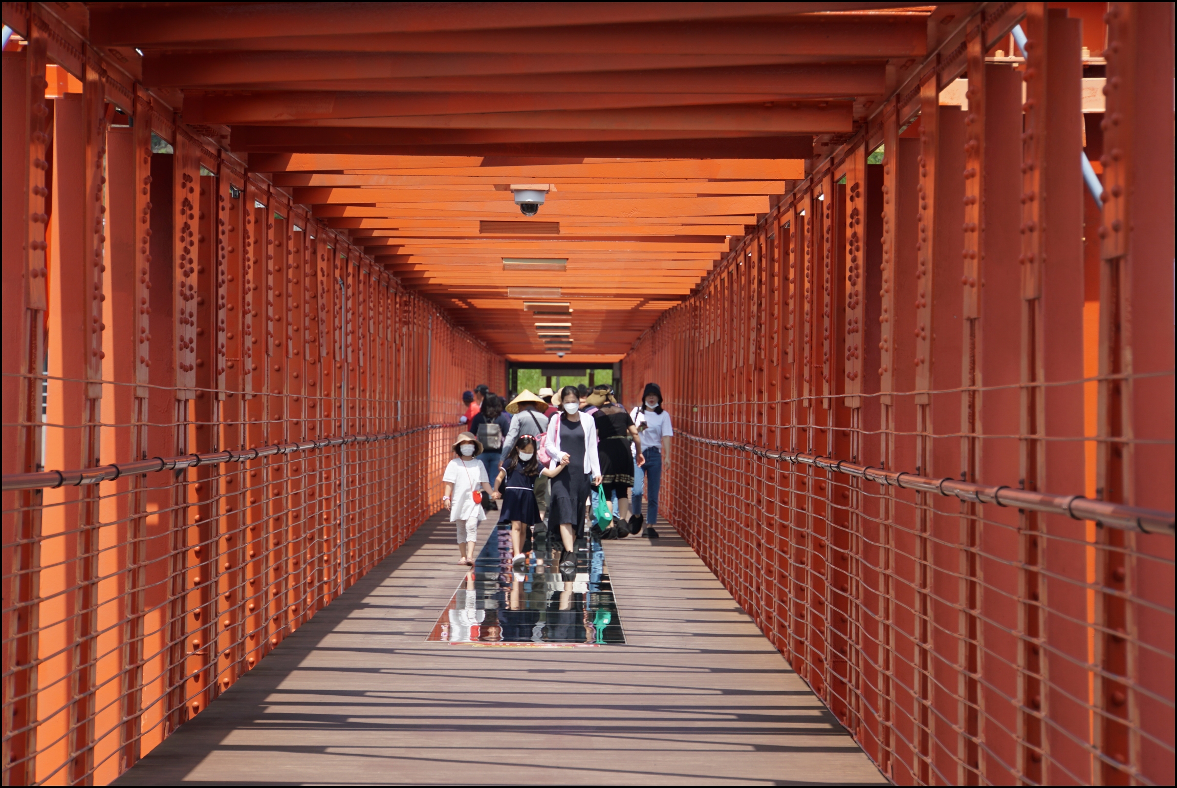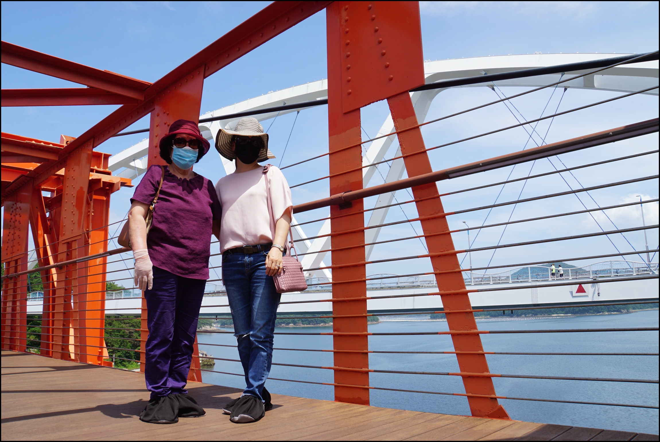 덧신을 신고 건너갑니다.