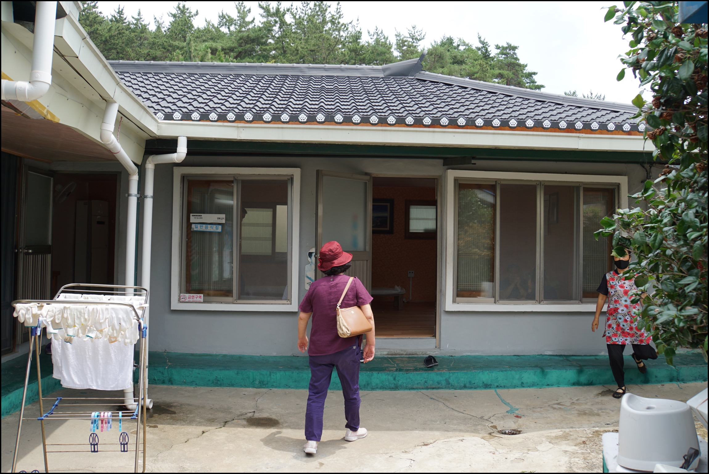 어머니와 집사람은 멀리 그늘에~