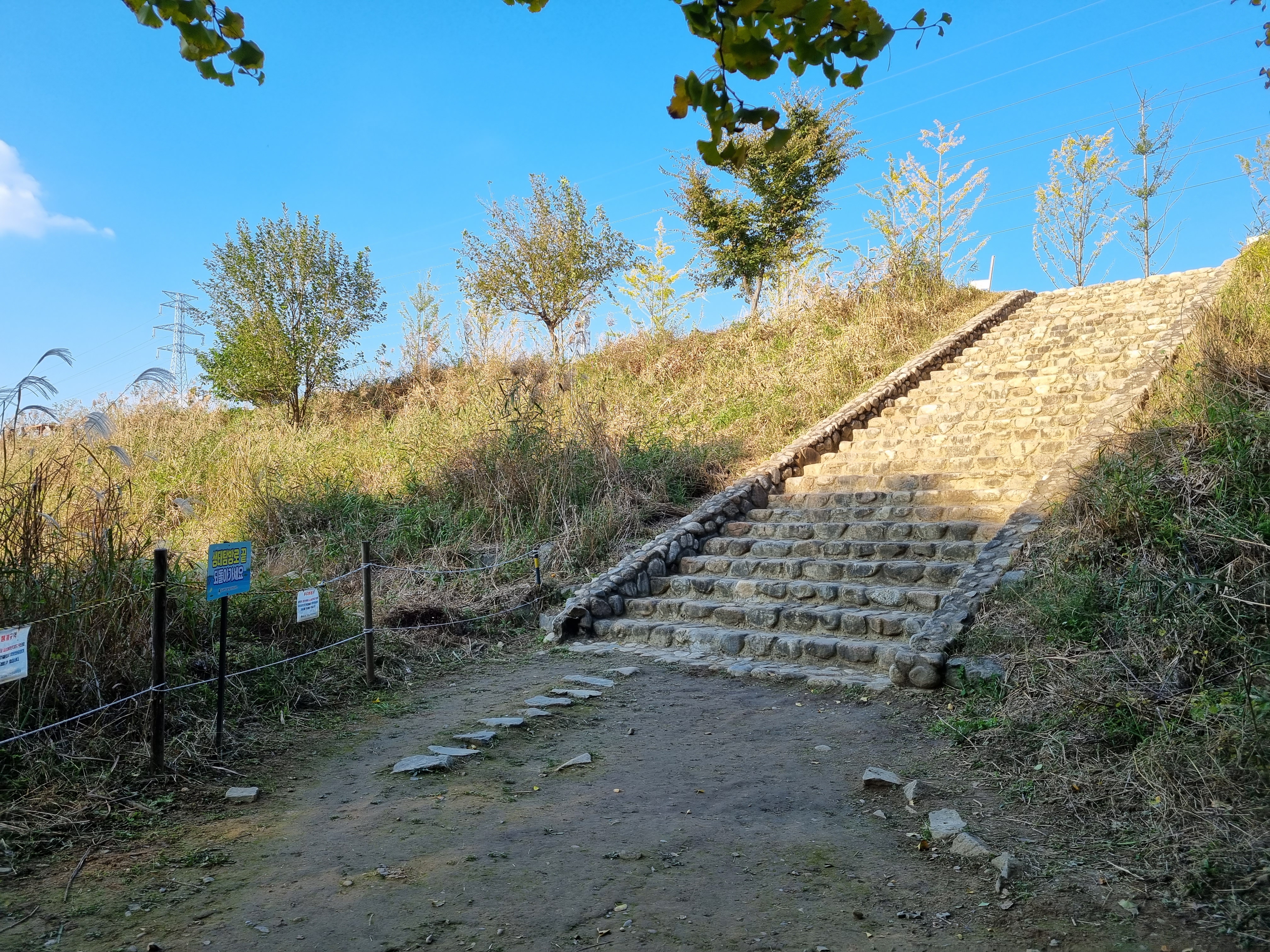 곳곳에 뚝으로 올라가는 돌계단이 있고요.