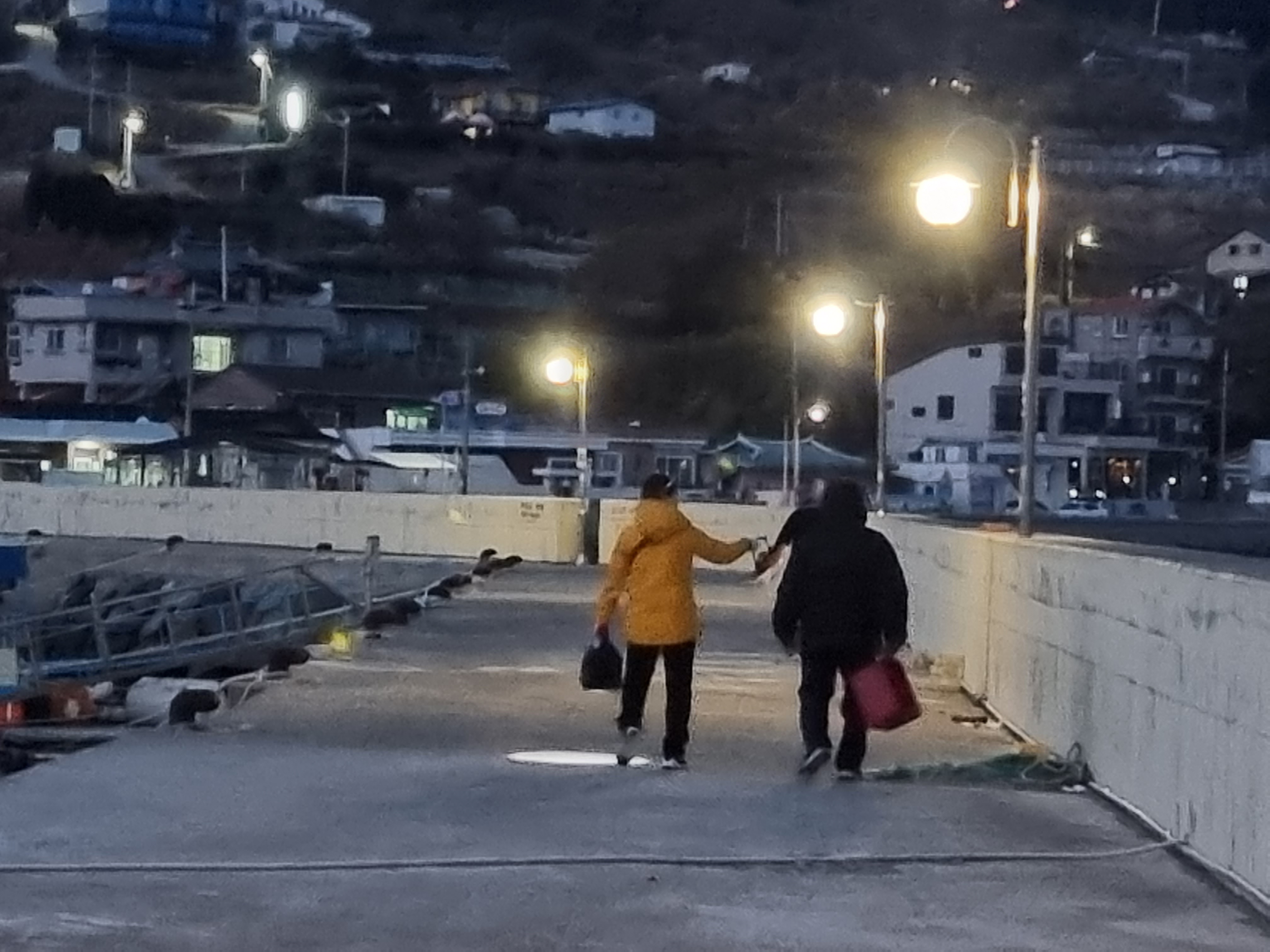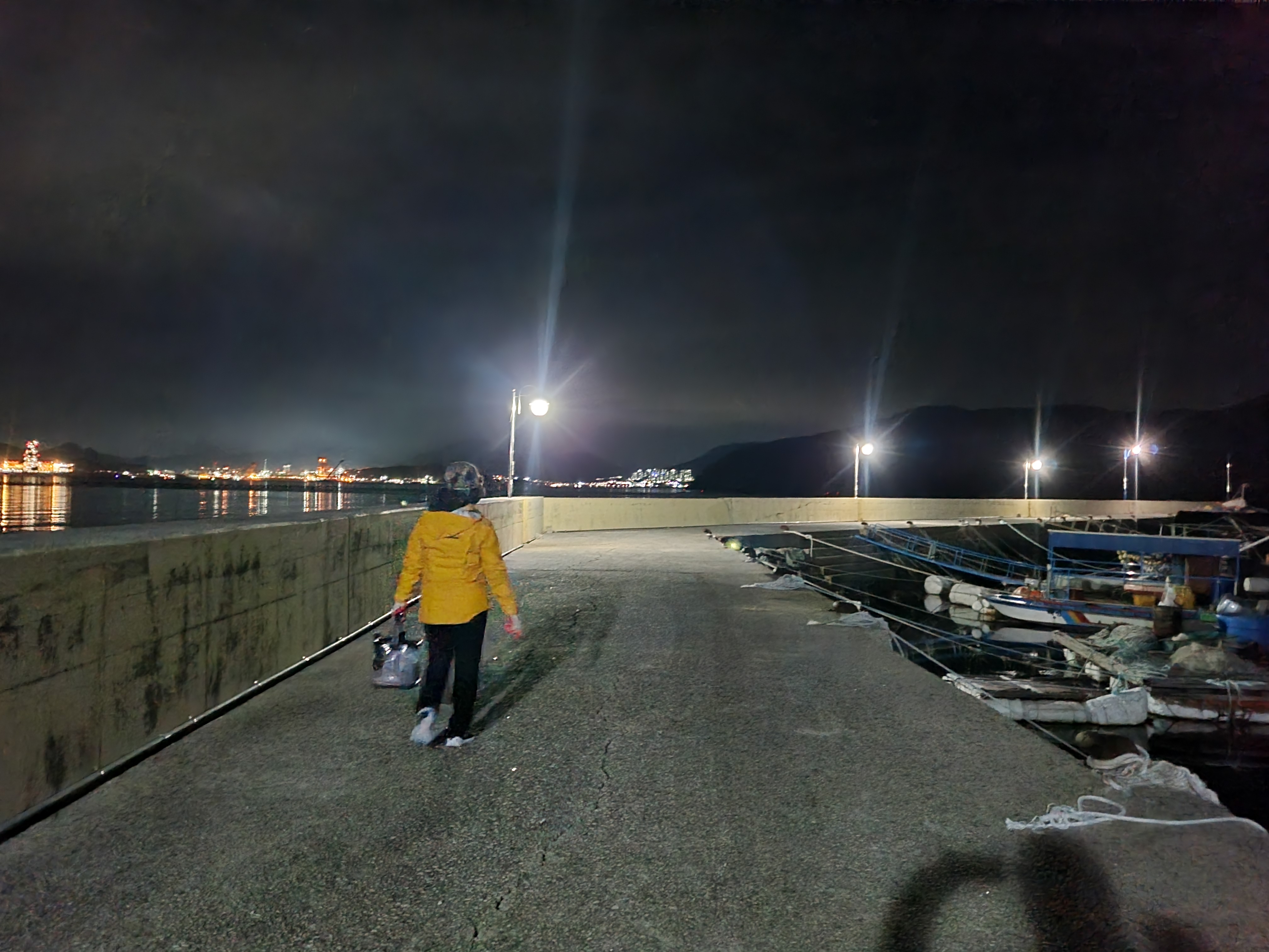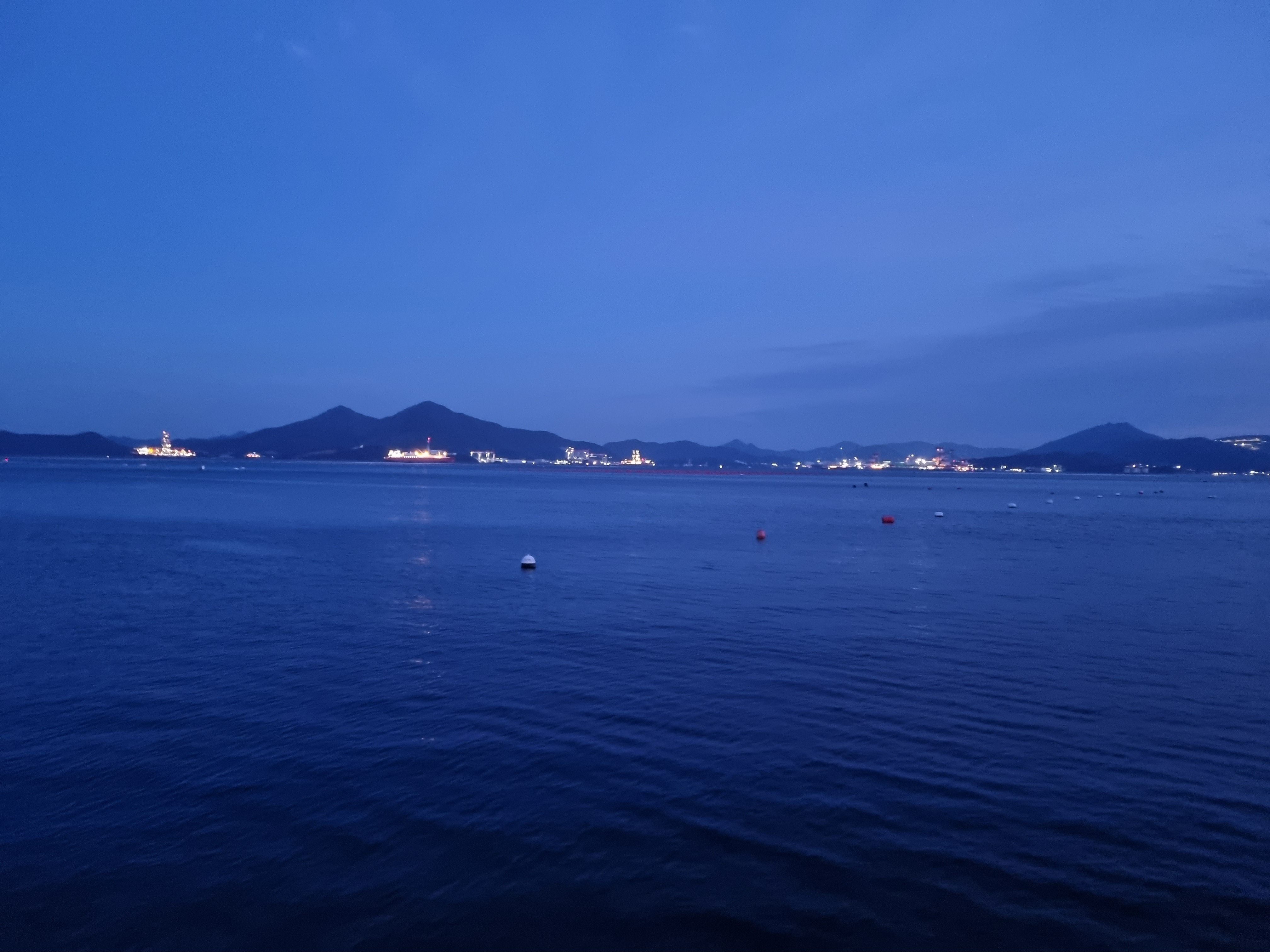 저 건너편은 조선소인가 보네요. 큰 배에 불이 환하게 켜져 있는데 카메라로 찍으면 잘 나올 듯~