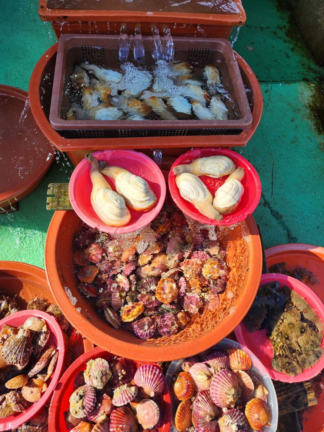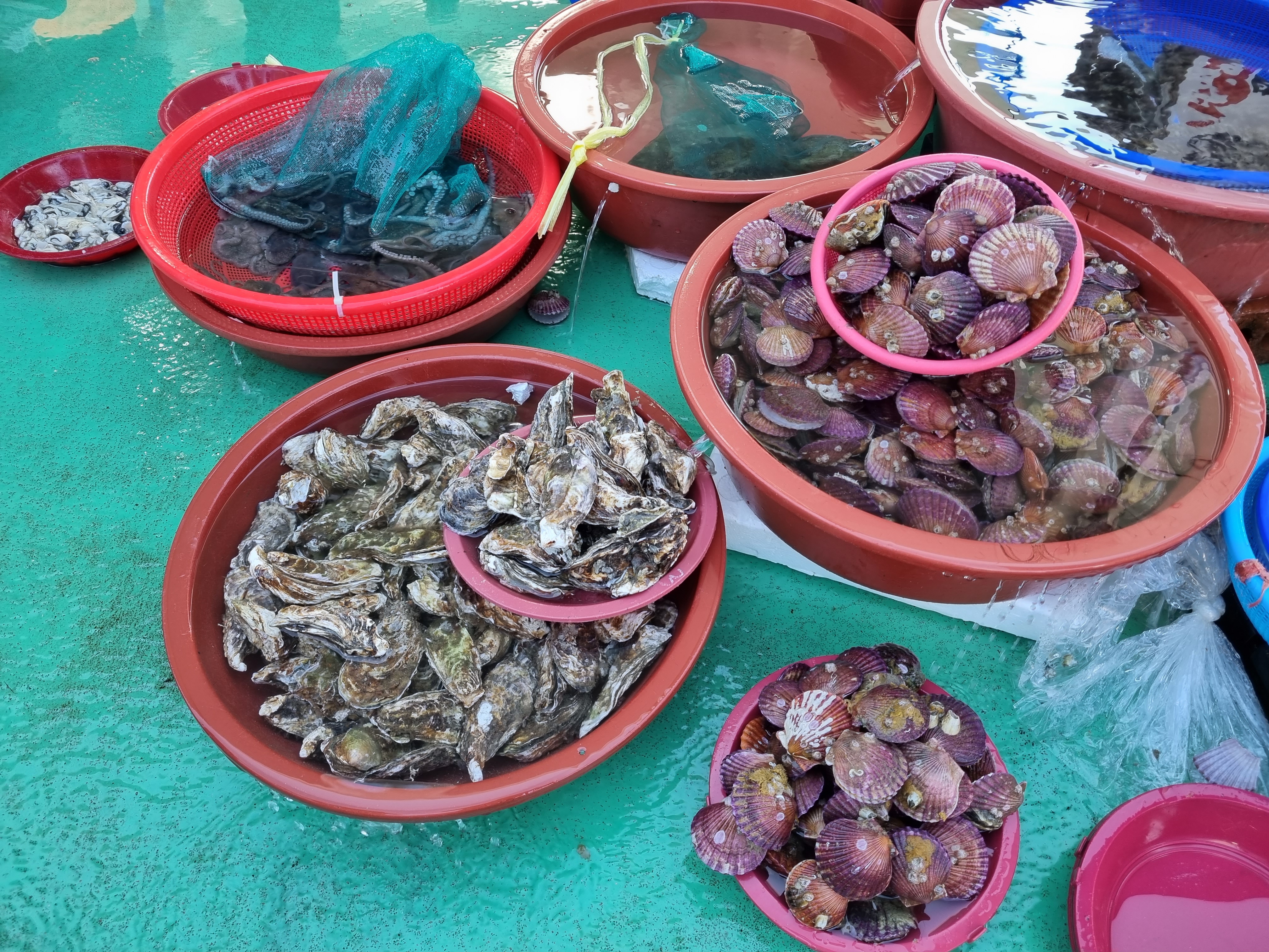 가리비 2만원씩 3개 포장하고 아이스박스를 얻고 바로 앞 얼음 파는 곳에서 얼음을 구입해 담았습니다. 낙지도 조금 구입하고요.