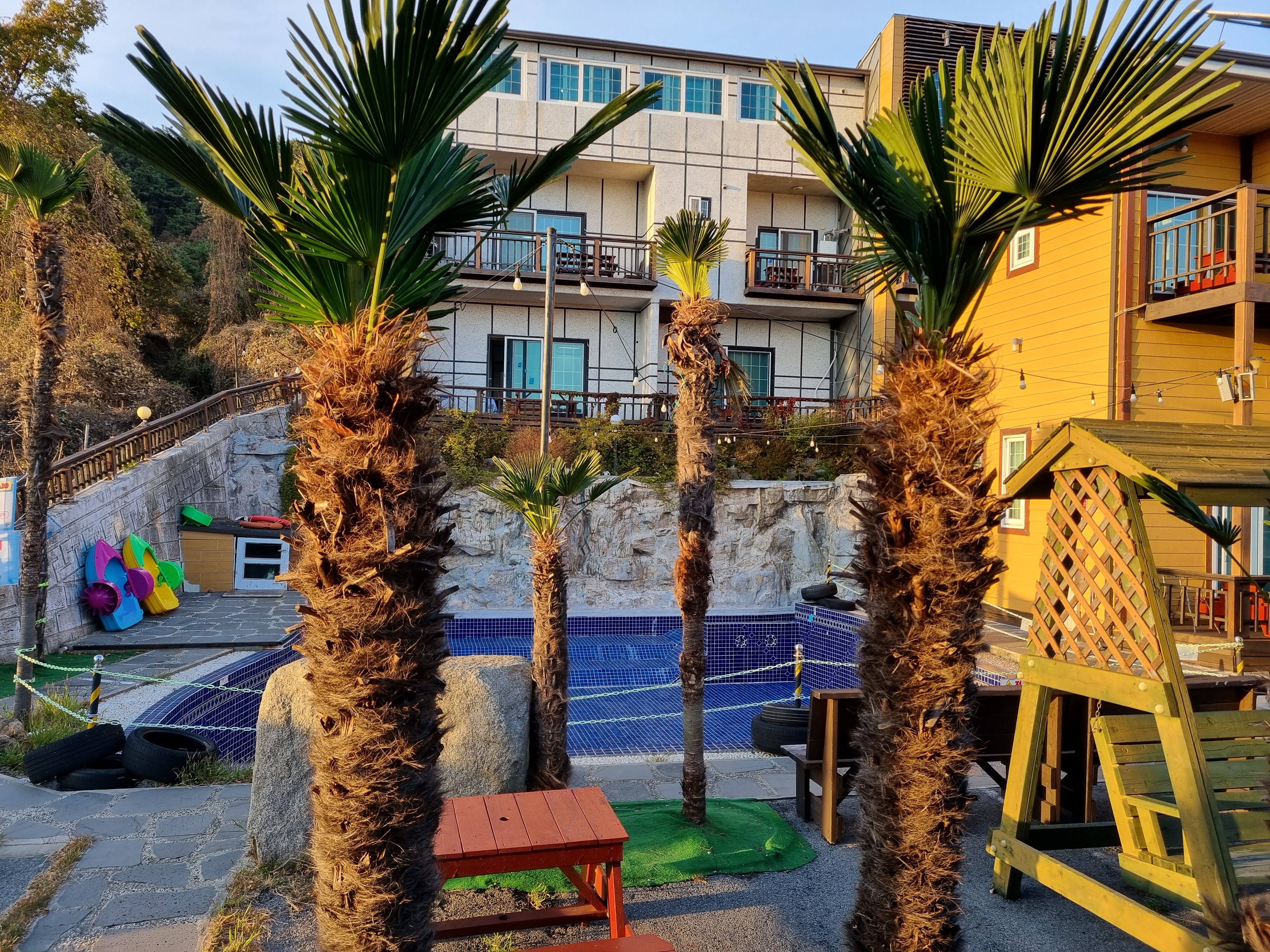 위쪽에는 수영장도 있고요.