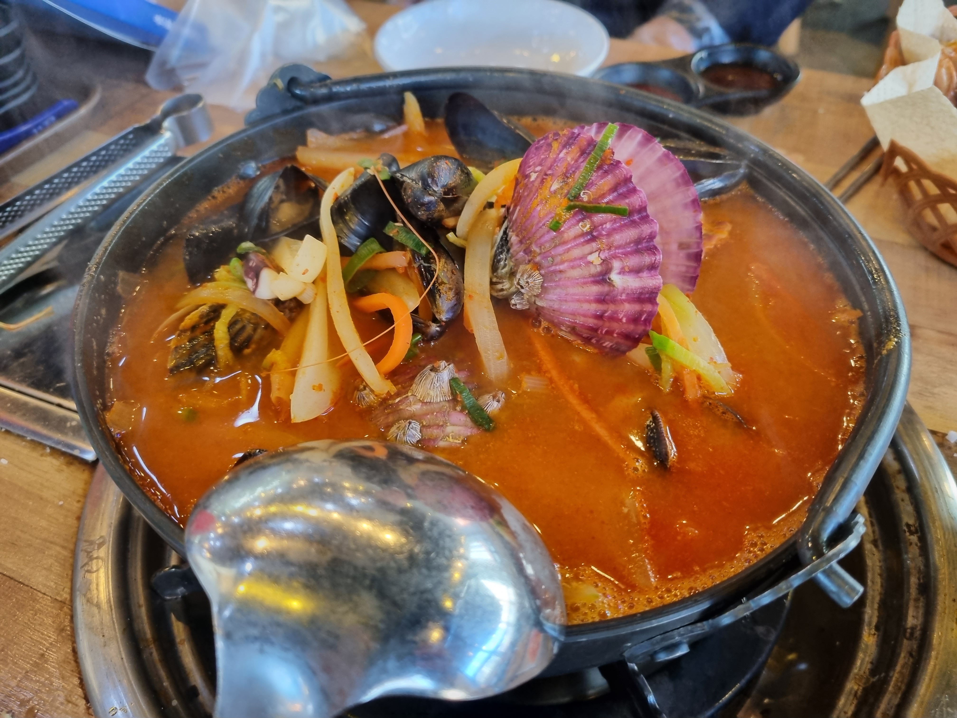 그리고 여기 오면 꼭 먹어봐야 되는 게 우측에 흰 조개입니다.