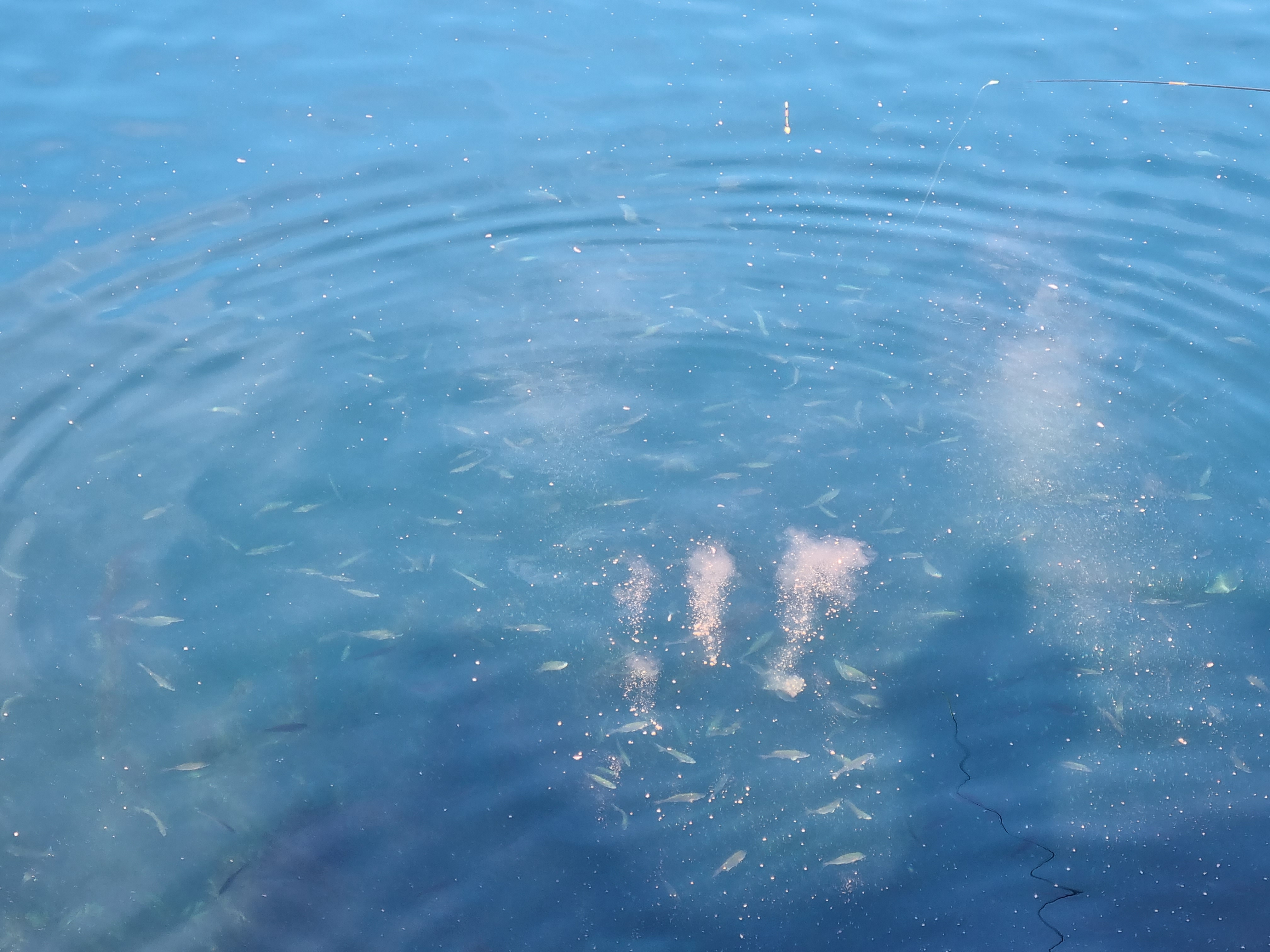 밑밥으로 발 앞으로 유인을 해도 안되고 찌낚시로 수심 10여 미터를 주고 해 보니 물도 안 가고 잡어만 올라옵니다.