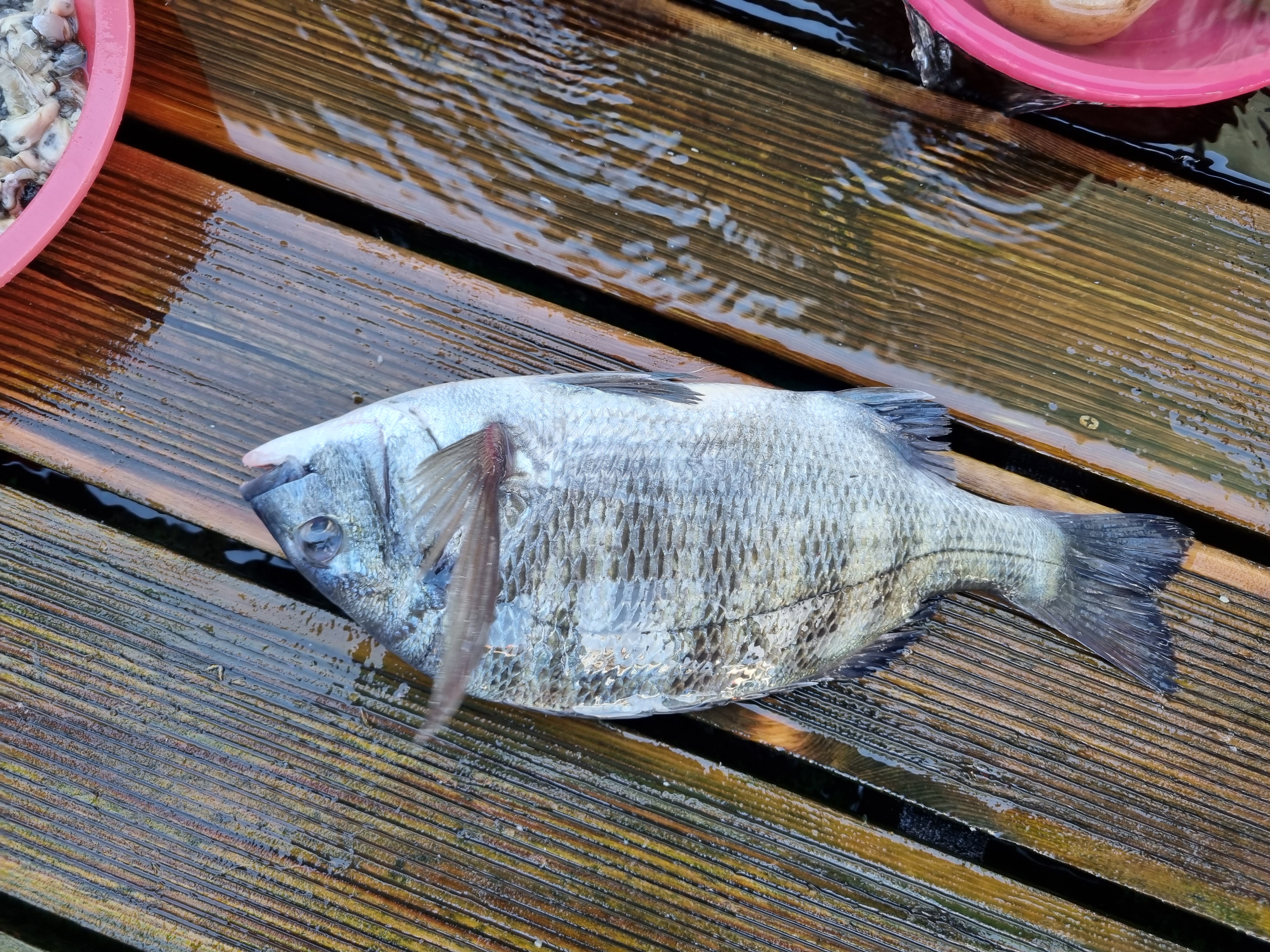 밑밥통도 놓아두고 와서 밑밥을 비닐에 담아 오고,물통 큰 거 하나 구입해서 왔는데 전자찌와 케미를 안 가져왔네요.