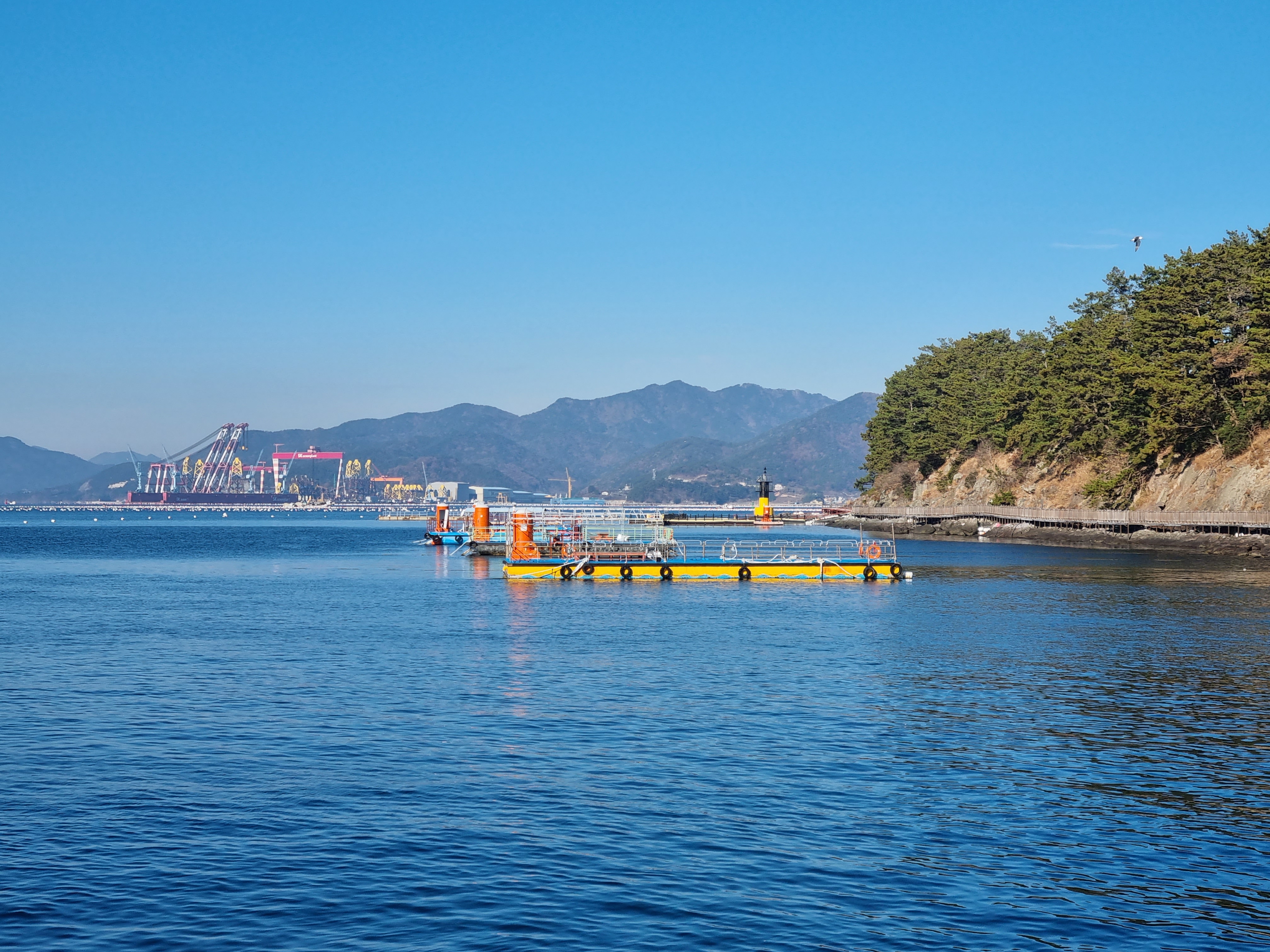 여기는 거제도이고 우리는 저기 다리를 건너 가조도라는 작은 섬으로 들어갑니다.