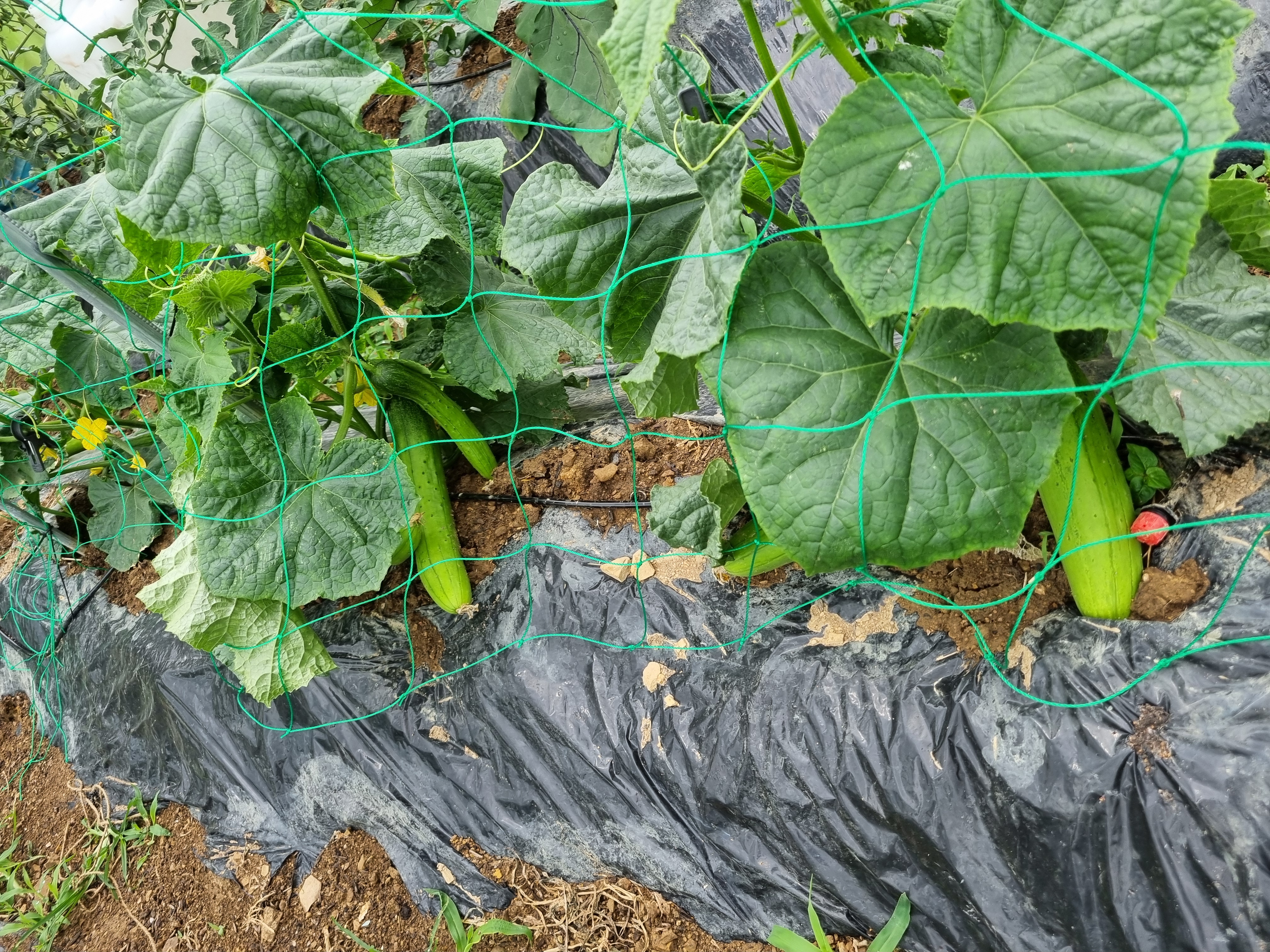 마지막으로 오이, 토마토에 점적호스 다시 만들고 돌아갑니다.