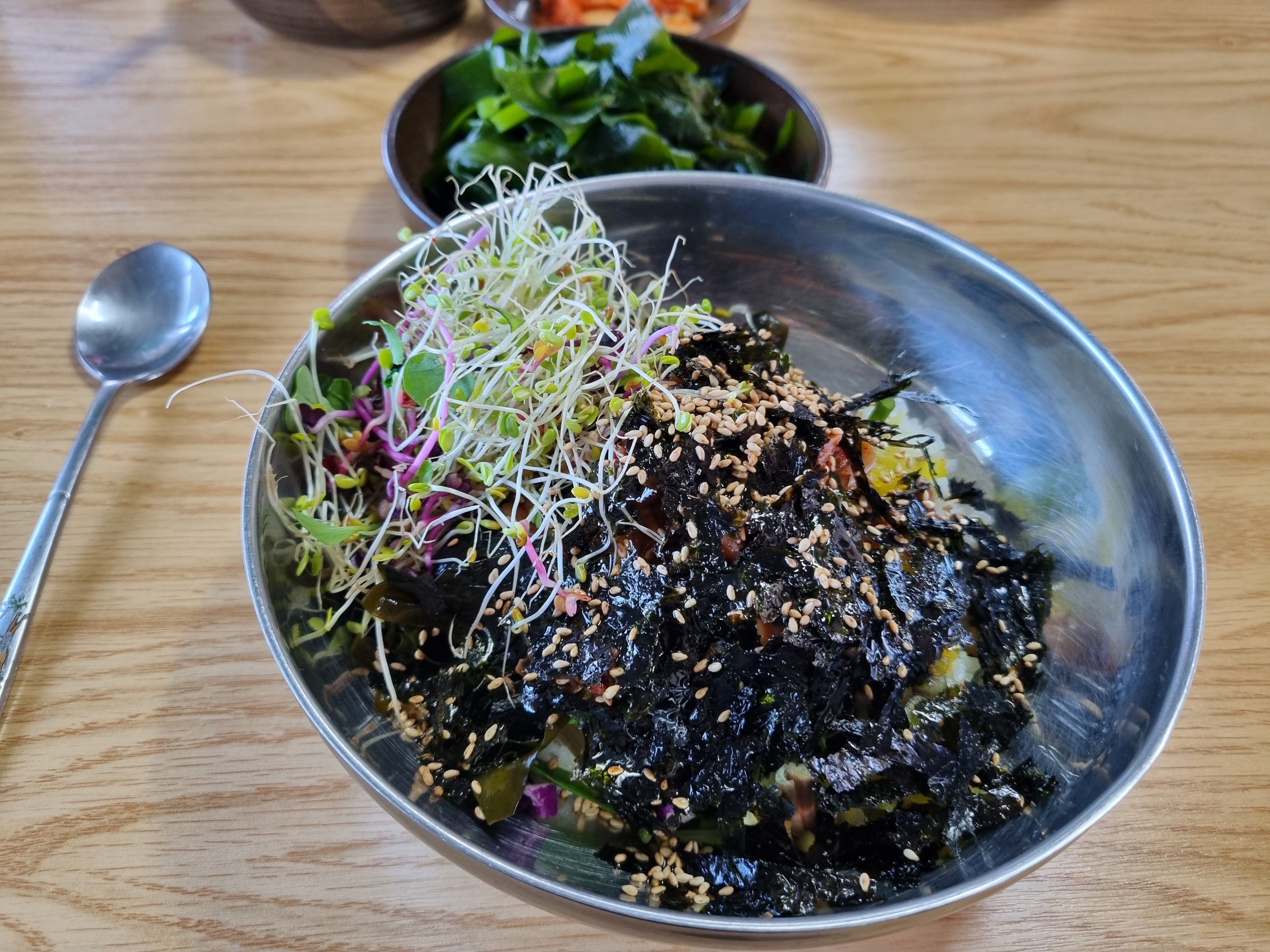 조금 전 한바탕 지나가고 난 뒤라서 인지 메뉴가 떨어진 게 많아서 보리밥과 꼬막비빔밥을 주문
