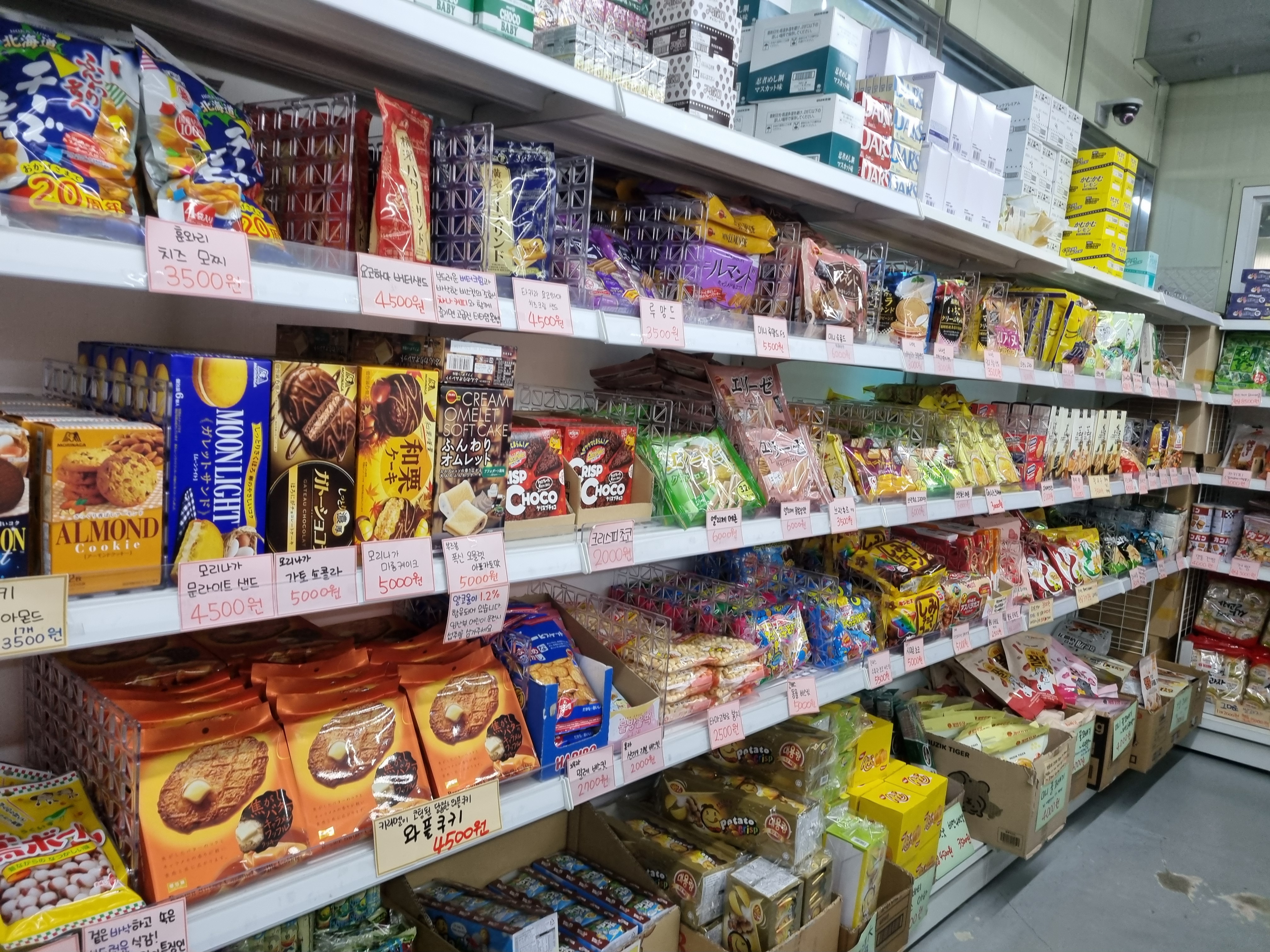 지붕 없는 곳으로 와서 외국과자 파는 곳으로 왔습니다.