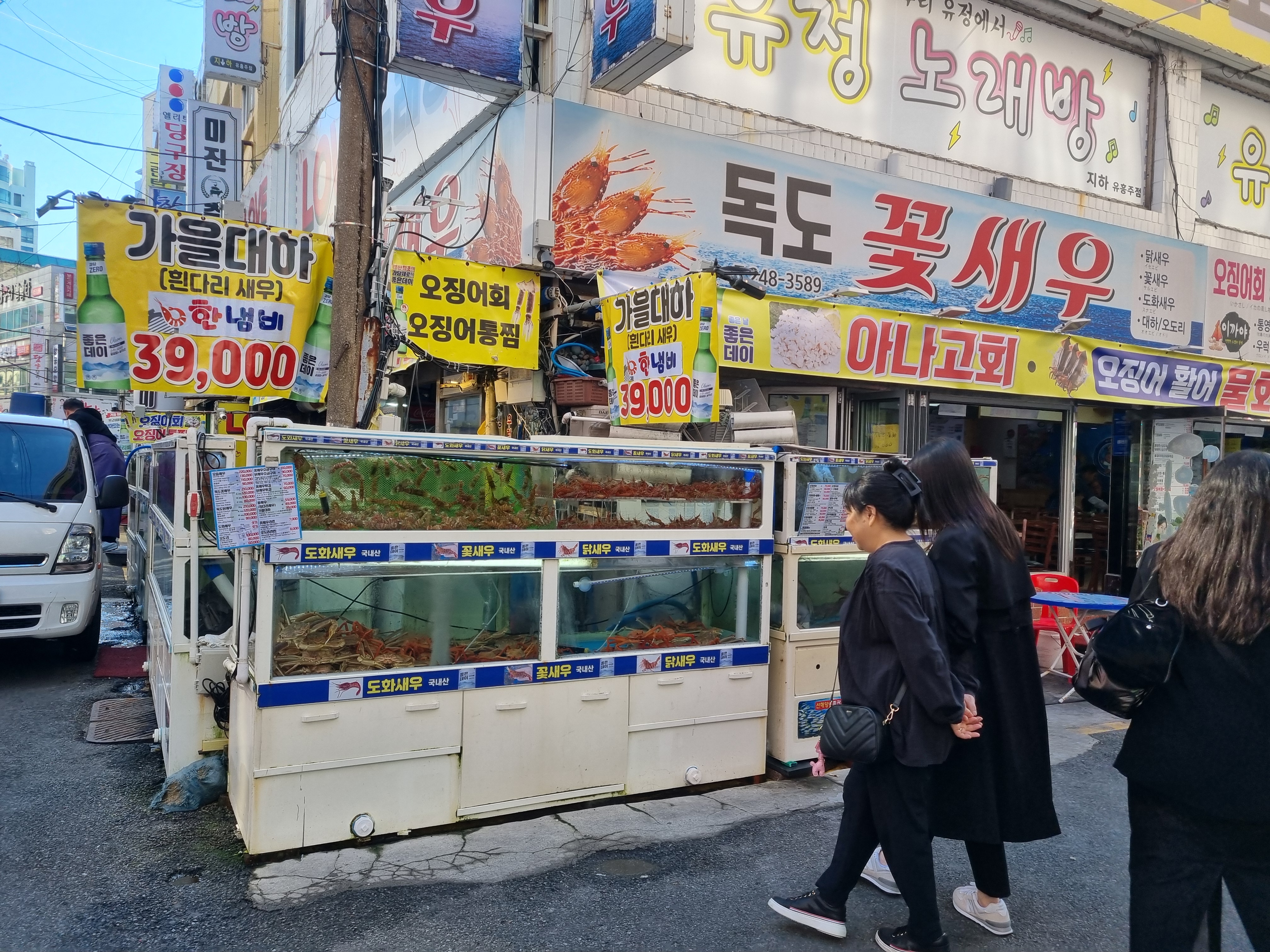 주차하고 내려오면 바로 해안시장과 꼼장어 골목이 있습니다.