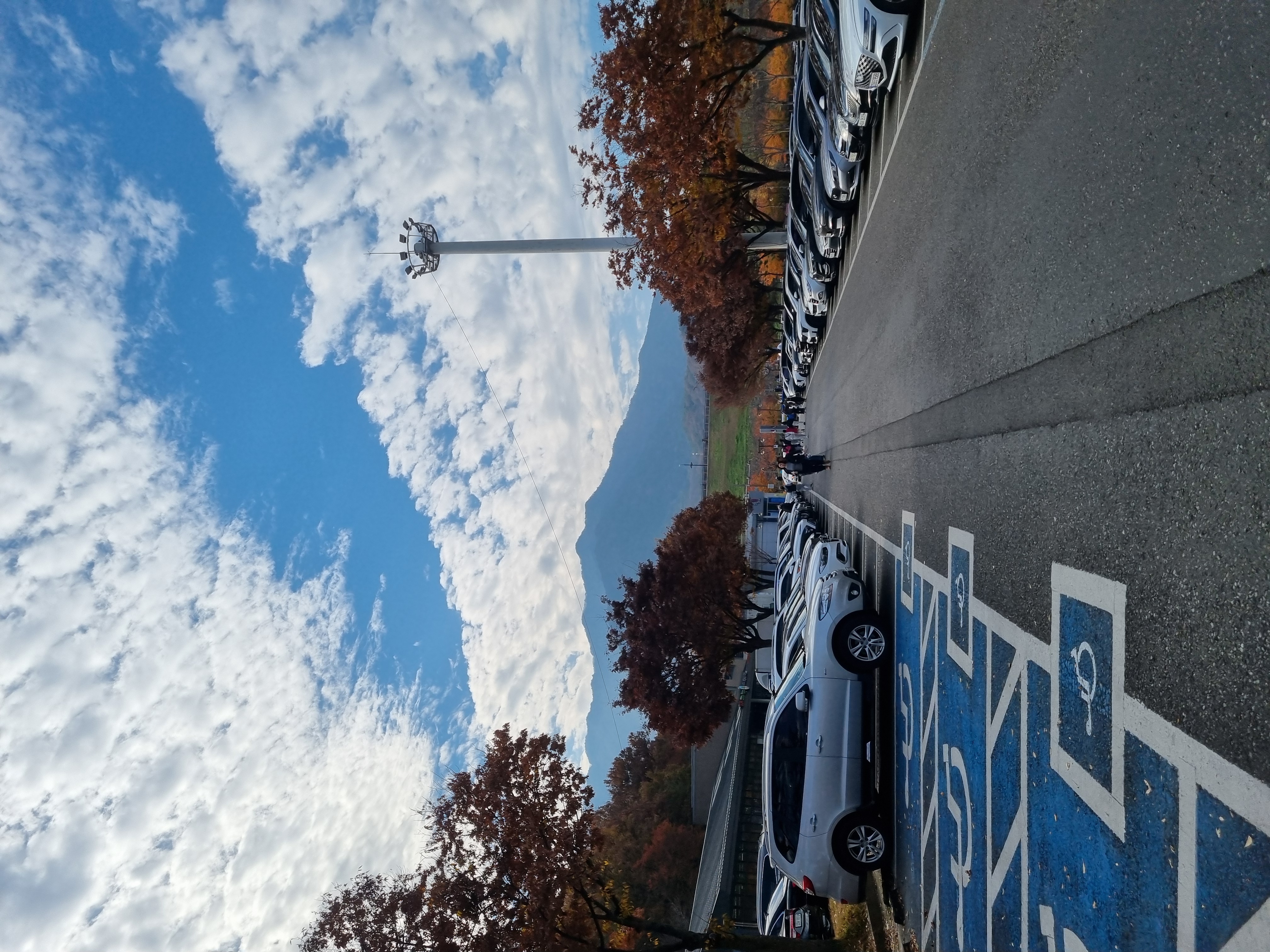 저수지 뚝 밑에 아주 큰 공영주차장이 있습니다. 정면에 못뚝이 보이고요.