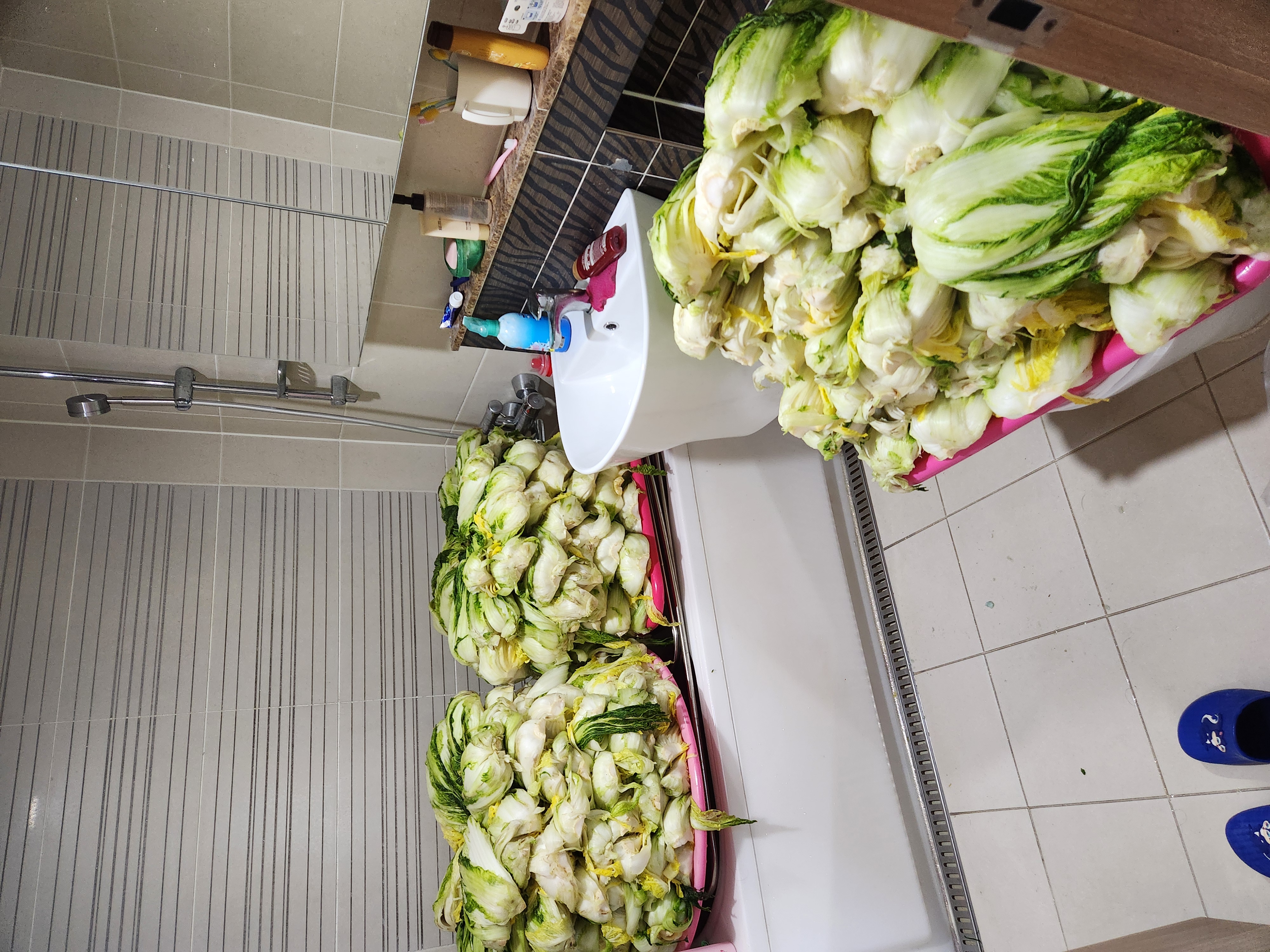 배추를 정리해서 소금물에 절입니다.