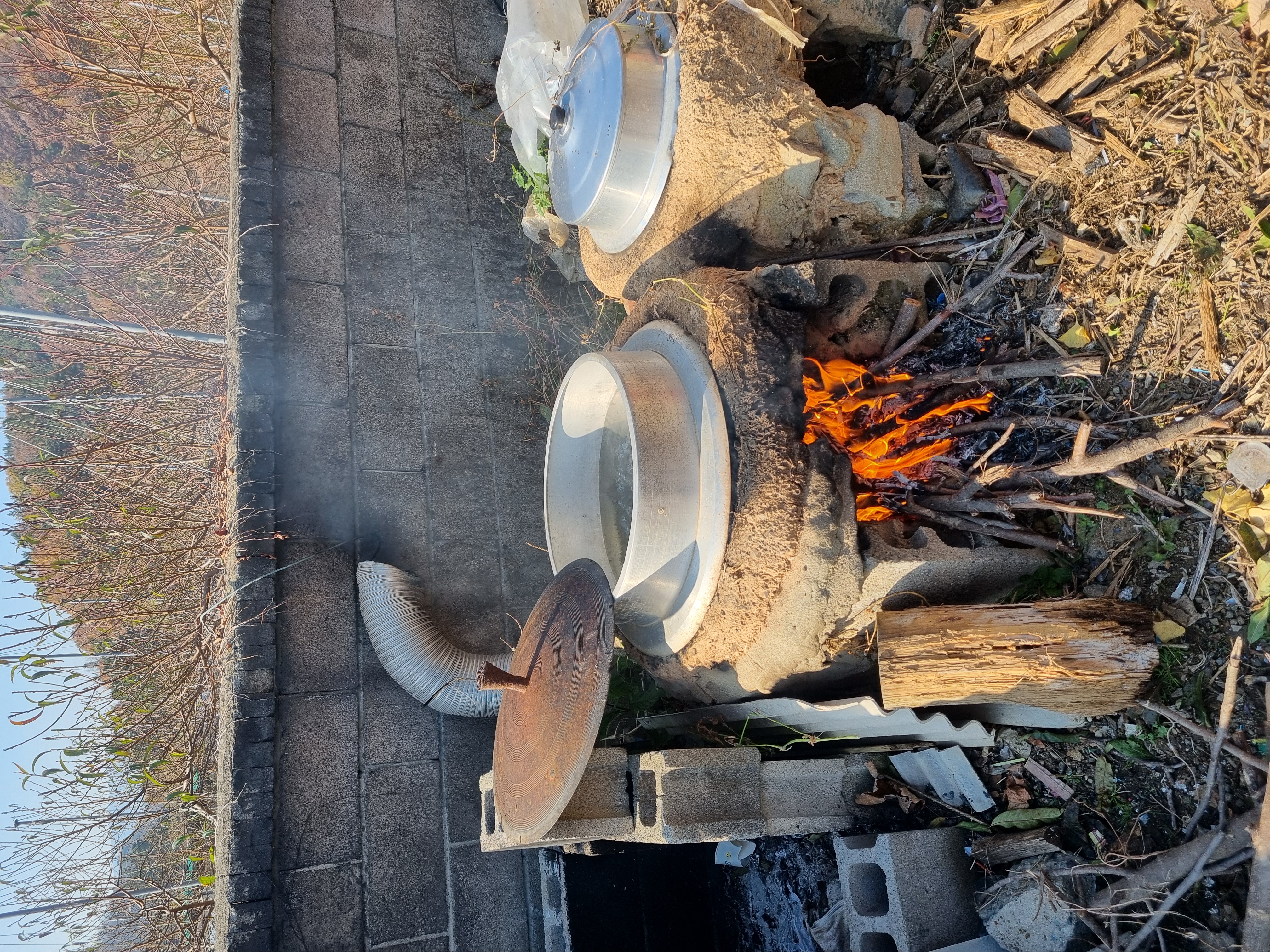 불을 때서 물을 끓이고