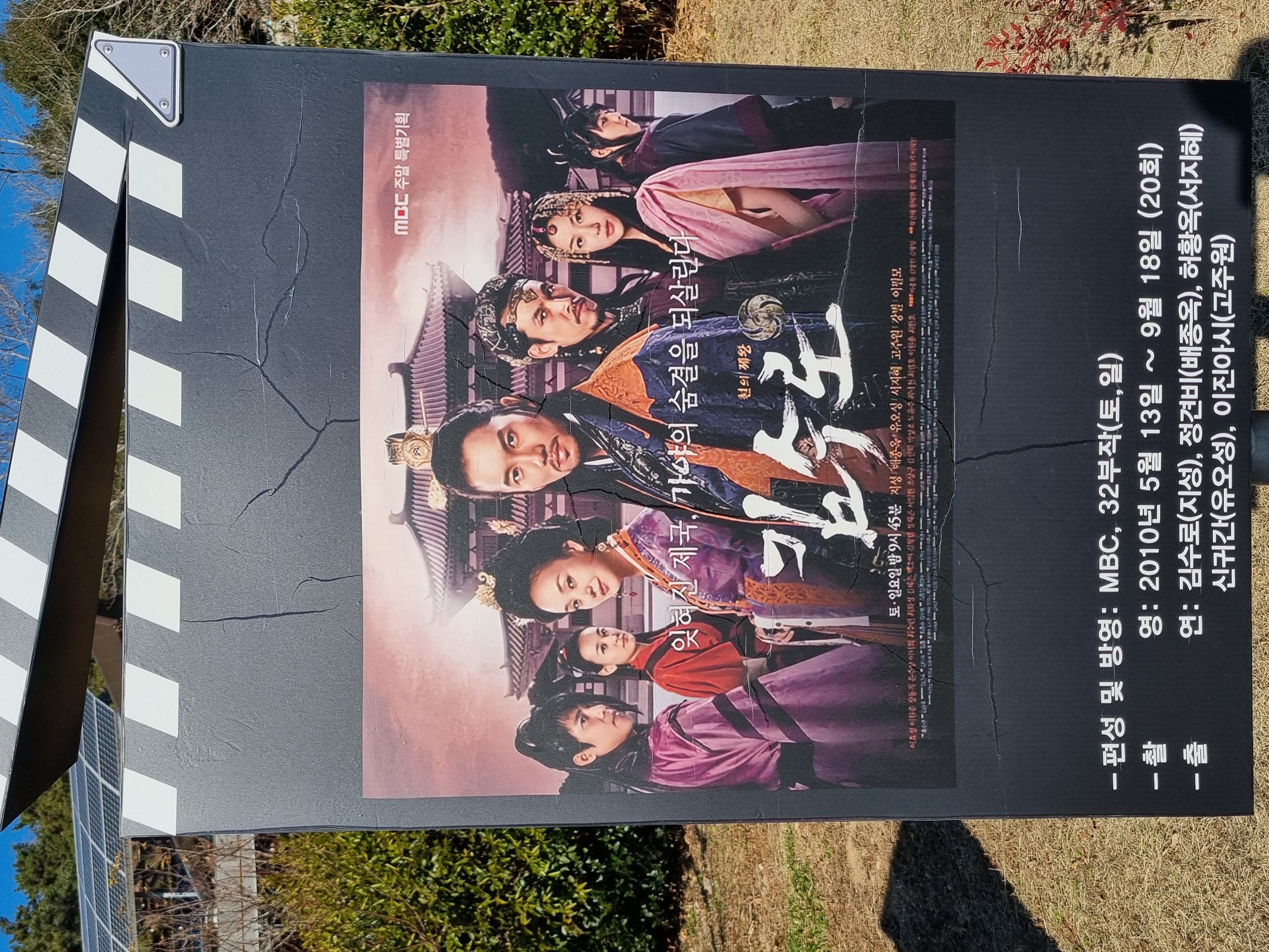 드라마 세트장에서 촬영한 포스터들이 줄지어 있고