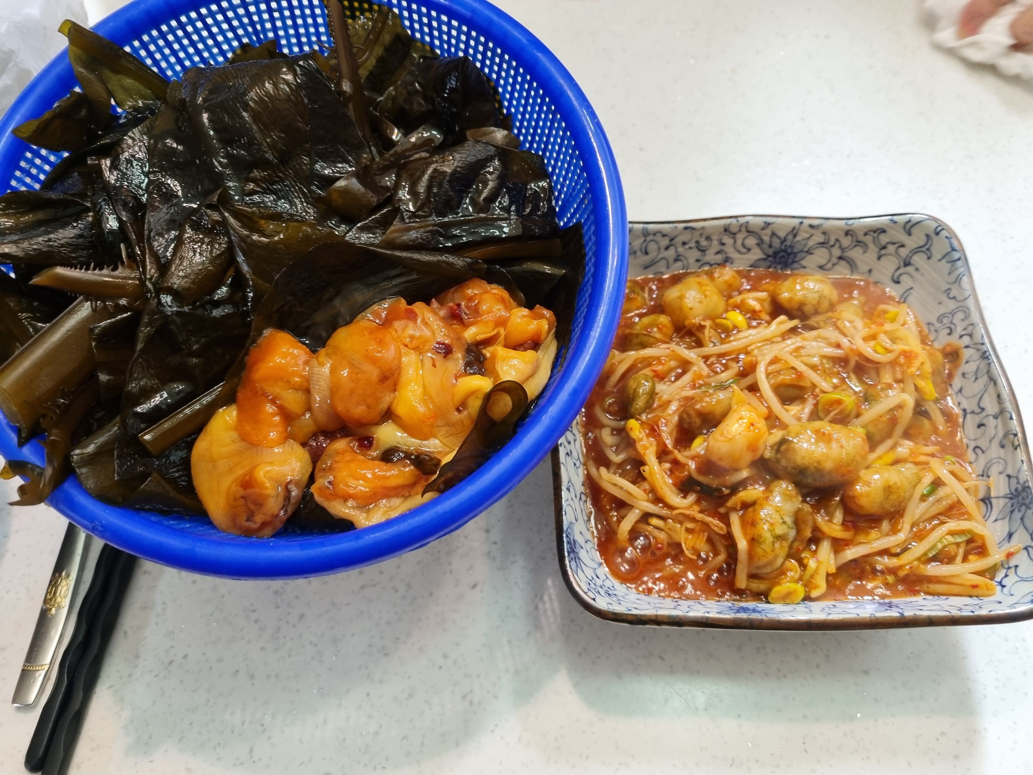 그리고 집에 가면서 시장에 들러 멍게와 미역, 그리고 콩나물을 구입하여 미더덕찜을 만들어 저녁을 먹습니다.
